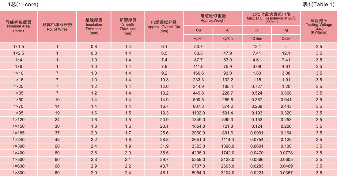 注:單芯用于交流系統(tǒng),采用非磁性金屬帶